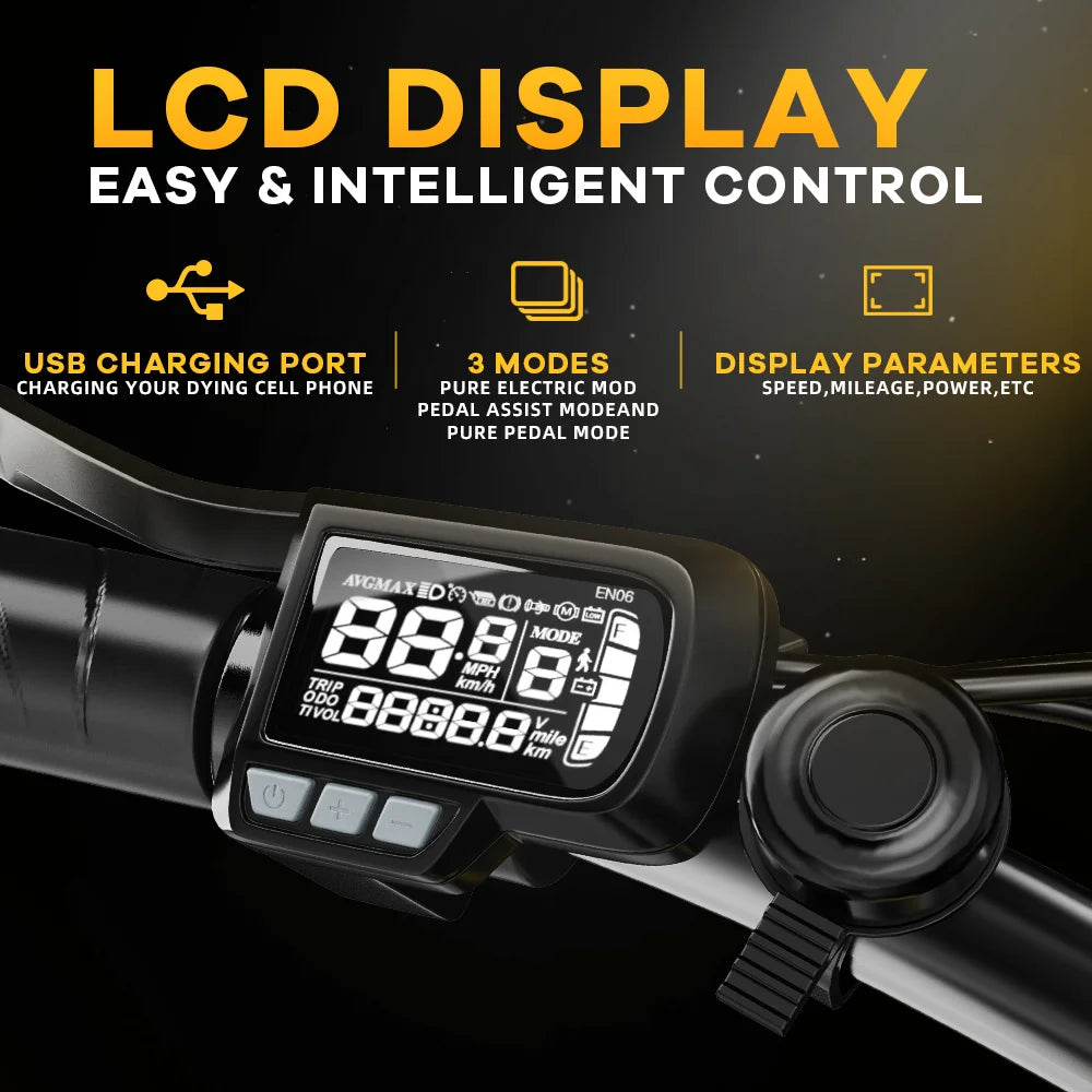 Compared with standard bikes and many folding e-bikes, the 1000W EK4 blends groundbreaking power with practical portability. The removable 48V 20Ah battery minimizes downtime, while the foldable carbon steel frame makes it easy to carry into apartments, offices, or public transit. Fat tires deliver confidence across mixed terrains, so you can ride year-round with less worry about road hazards and weather conditions.