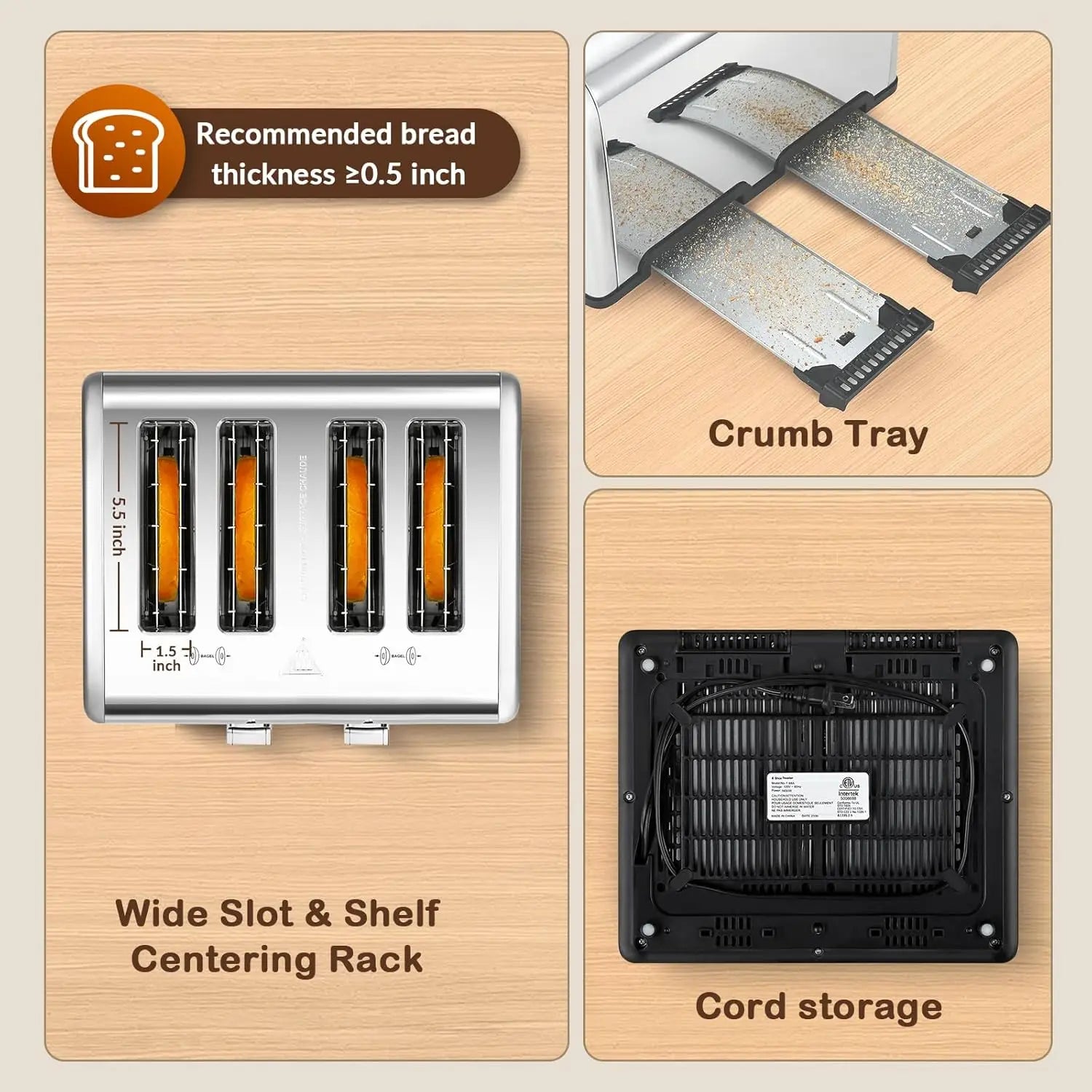 6. 【Easy to Clean and Maintain】: The non-stick, food-grade stainless steel slots and removable crumb tray make cleaning this toaster a breeze. Spend less time maintaining your appliance and more time enjoying your perfectly toasted bread.