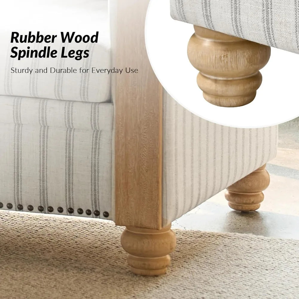 81" 3 Seater Sofa with Stripe Pattern, Farmhouse Couch with Rolled Wide Armrests and Rubber Wood Legs, Comfy Upholstered Sofa f