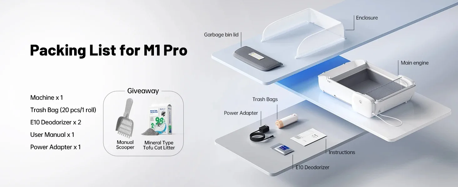 Smart Safety Sensors - Cat Safety First: Equipped with infrared motion sensors, the M1 Pro detects your cat’s presence and pauses cleaning cycles to prevent any risk of trapping or pinching. Its quiet operation ensures an undisturbed night’s sleep, making it the best low-noise smart litter box for your home