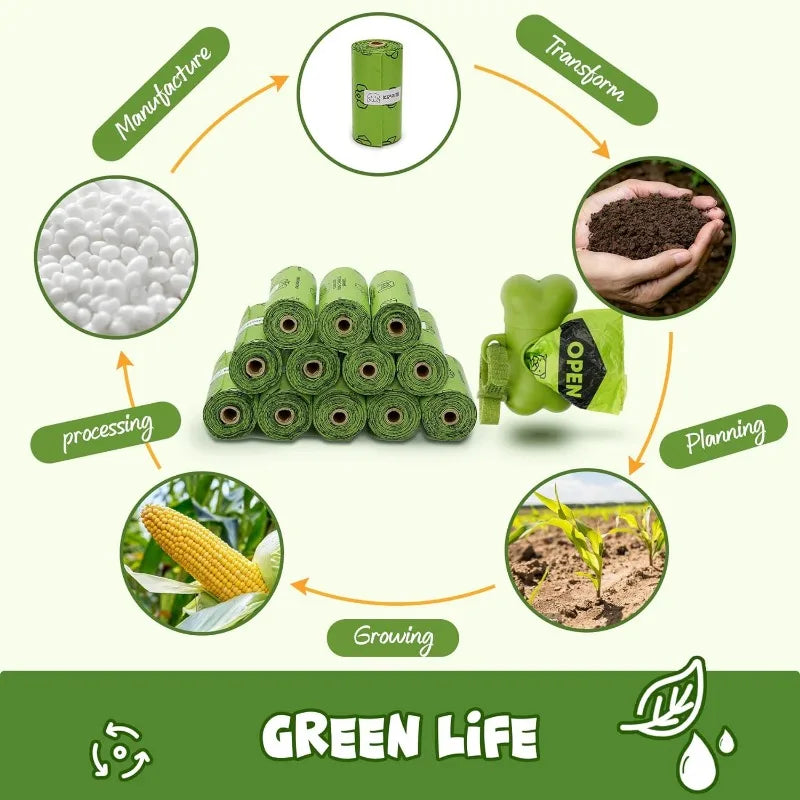 Dog Poop Bag Set with Dispenser & Leash Clip, Thick Waste Poop Bags for Puppy/Small/Medium/Large Dog & Cat