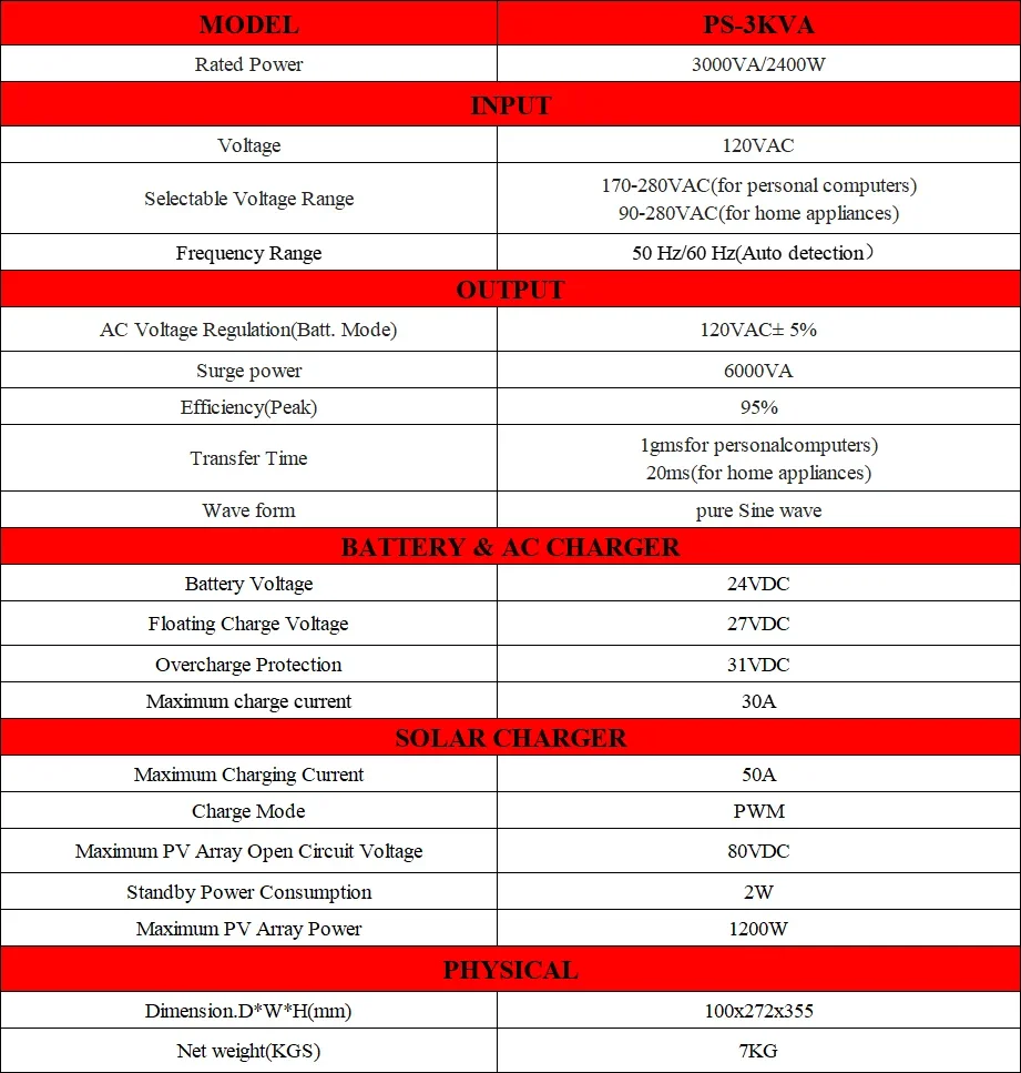 ECGSOLAX 2400W Hybrid Solar Inverter 24V 110V With PWM 50A Charging Controller Off-grid Solar Inverter 3000VA 120V Max PV 80VDC