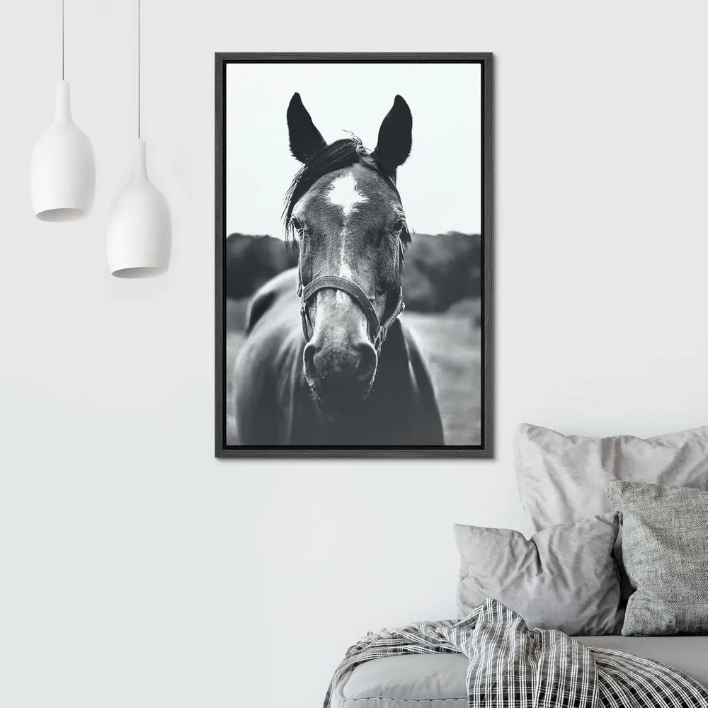 Equine Elegance: High Contrast Black and White Canvas Art, Grey Horse for Living Room Decor