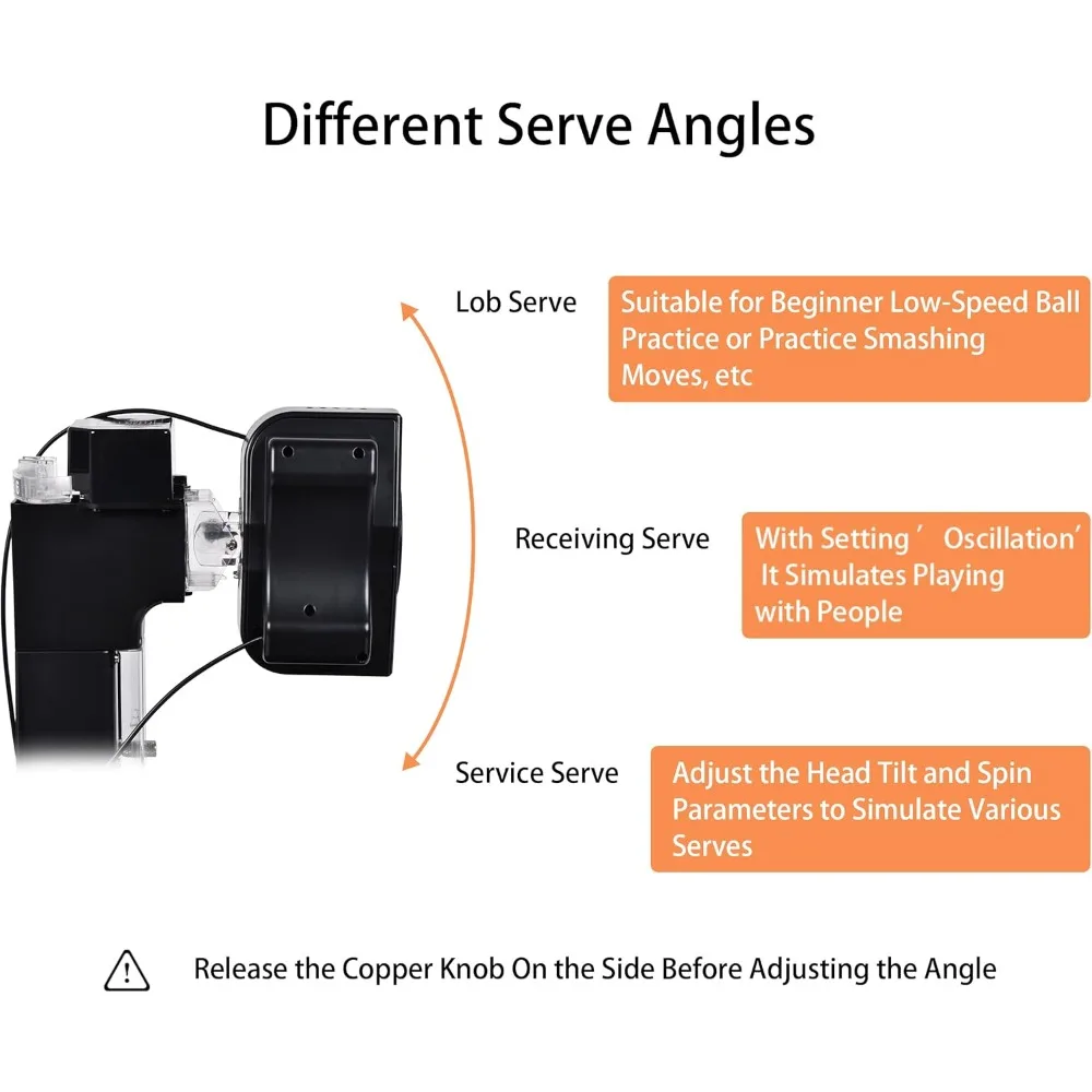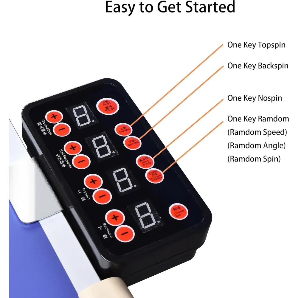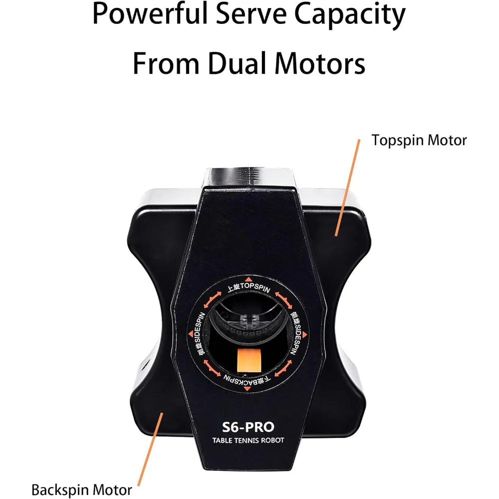 • Versatile Design with Setting Spins and Landing Points,Table Tennis Robot Machine Can Serve topspin, Backspin, No-Spin, Left-Spin, Right-Spin, Mixed-Spin, 9 Kinds of Spinning Balls in Different Frequency and Speeds.