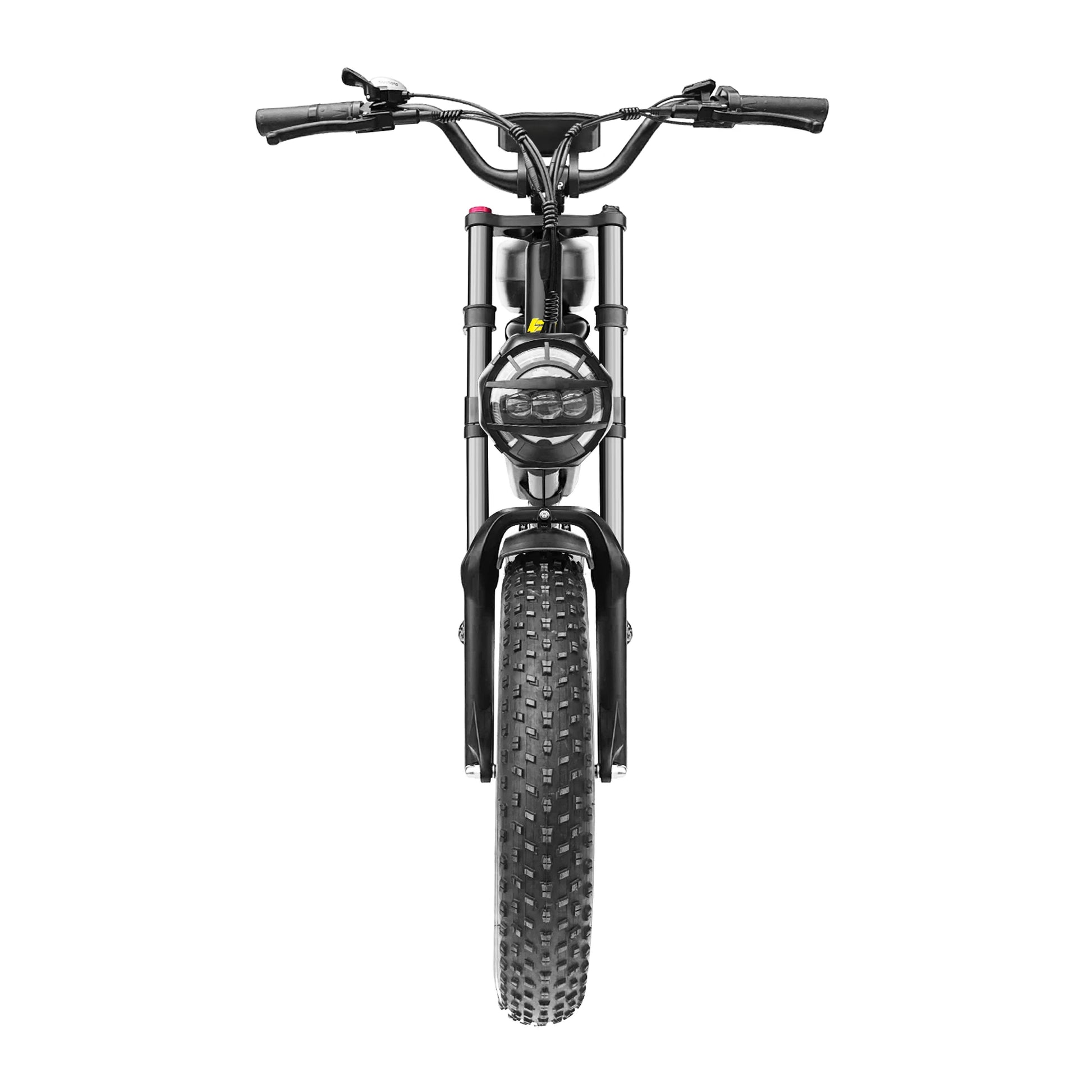 - Fat tire design for enhanced stability and grip on sand, snow, gravel, and city streets.