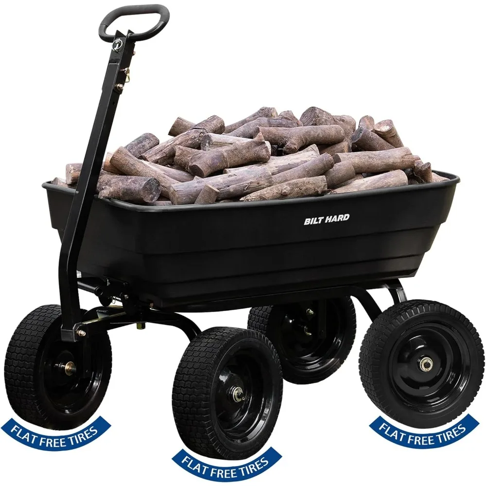 Poly Garden Dump Cart 1200 lbs with No Flat Tires, Quick Release, 2-in-1 Convertible Handle, 7 Cu Ft Dump Wagon Heavy Duty for