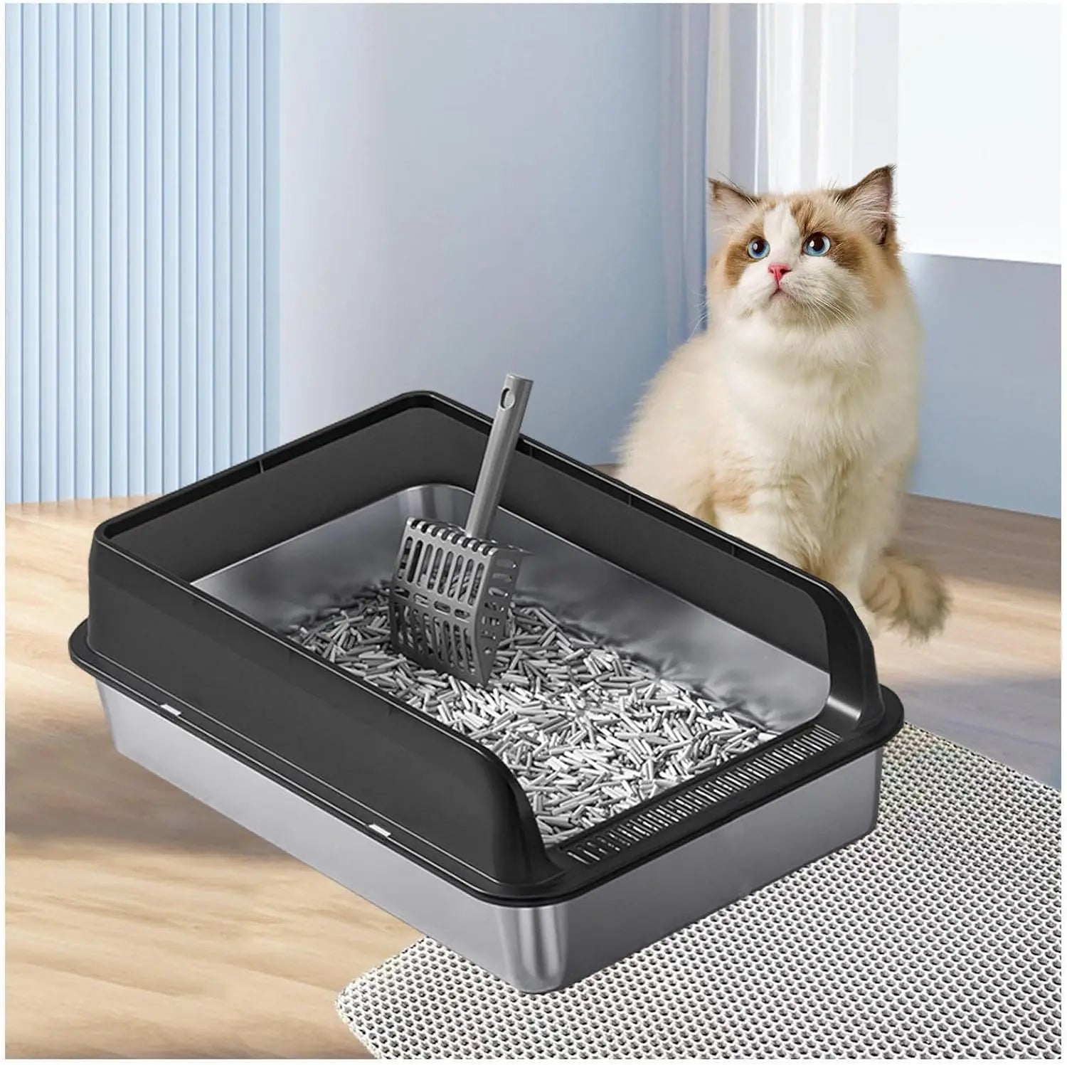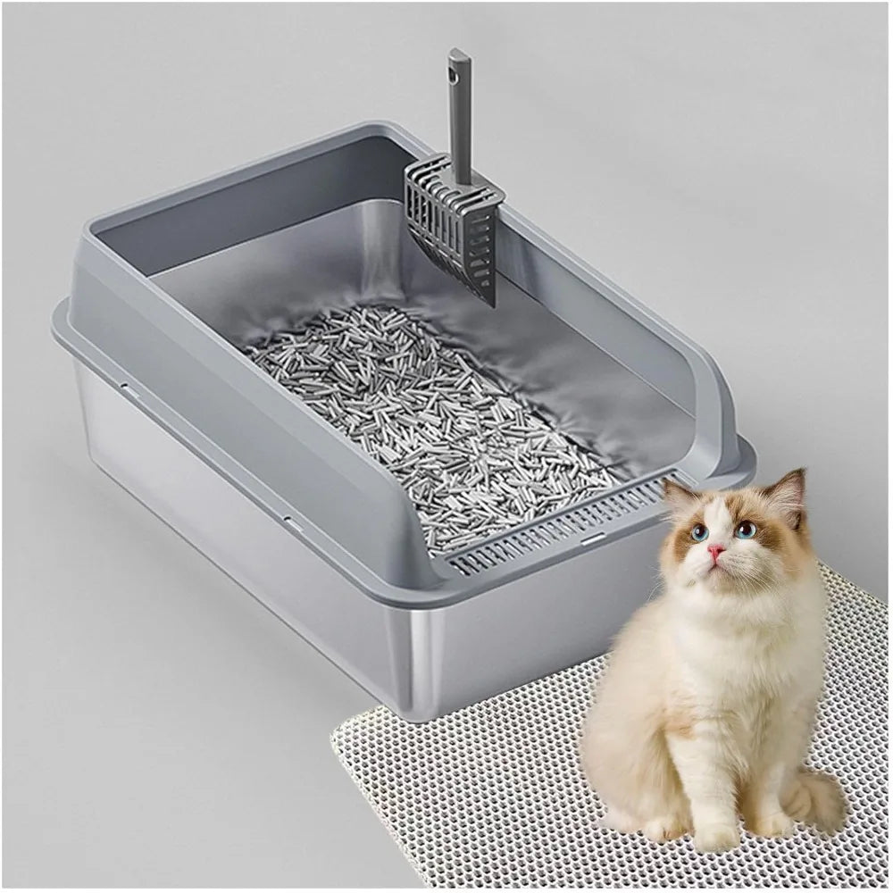 - 【Maintain a clean litter area】our large stainless steel litter box with high sides features an ingenious footboard design that cleverly collects any litter your cat may carry out. We include a cat litter scoop and cat litter mat as a complimentary accessory, making litter box maintenance even more hassle-free.