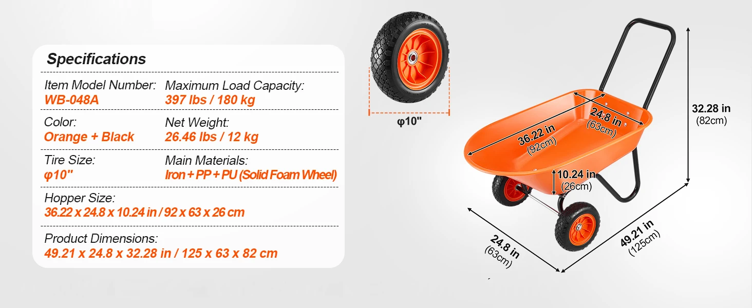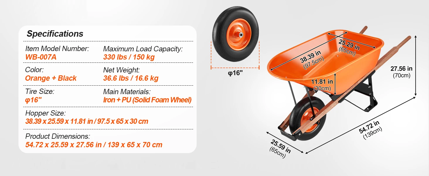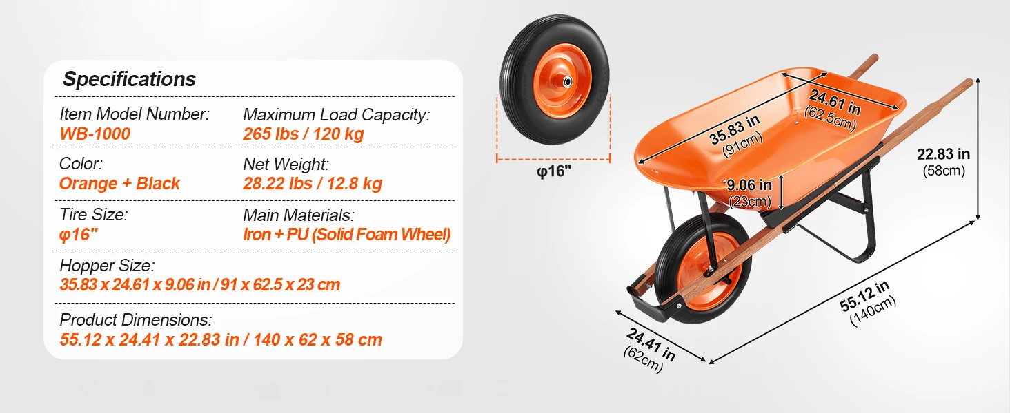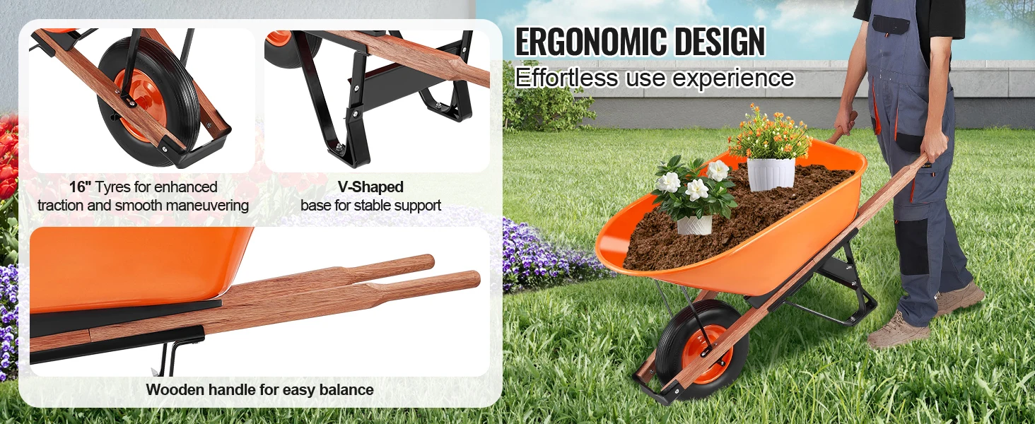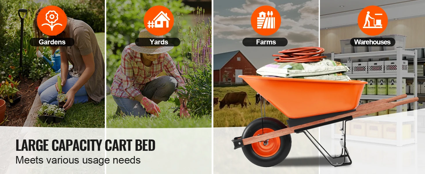 Gardening Helper: Our garden cart is ergonomically designed with a padded handle for easy control and balance. The 16-inch solid foam tire with deep treads provides excellent traction on all terrains, making it ideal for use in gardens, yards, farms, and warehouses.