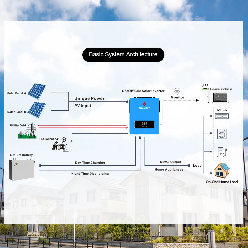 Sumry on/off Grid Solar Inverter 3600w Hybrid Pure Sine Wave Inverter for Home 120v 120A MPPT Solar Charge Dual Output 50/60hz
