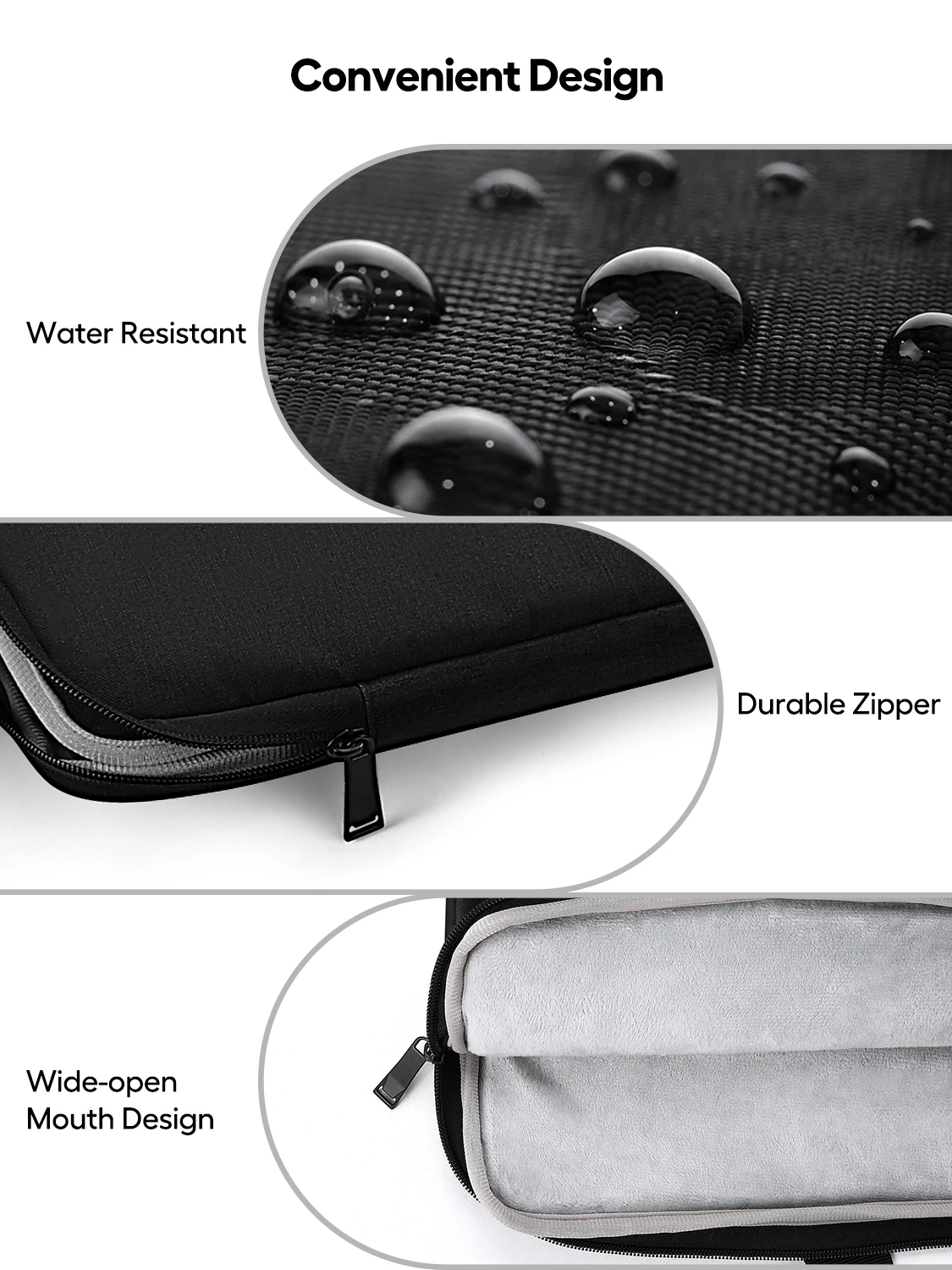 This large laptop sleeve has 3-layer protection, is waterproof, anti-shock, can well-protected your monitor, laptop or tablet.A premium quality zipper thoroughly stress tested for maximum resistance and security to help keeping the valuables secure and safe.